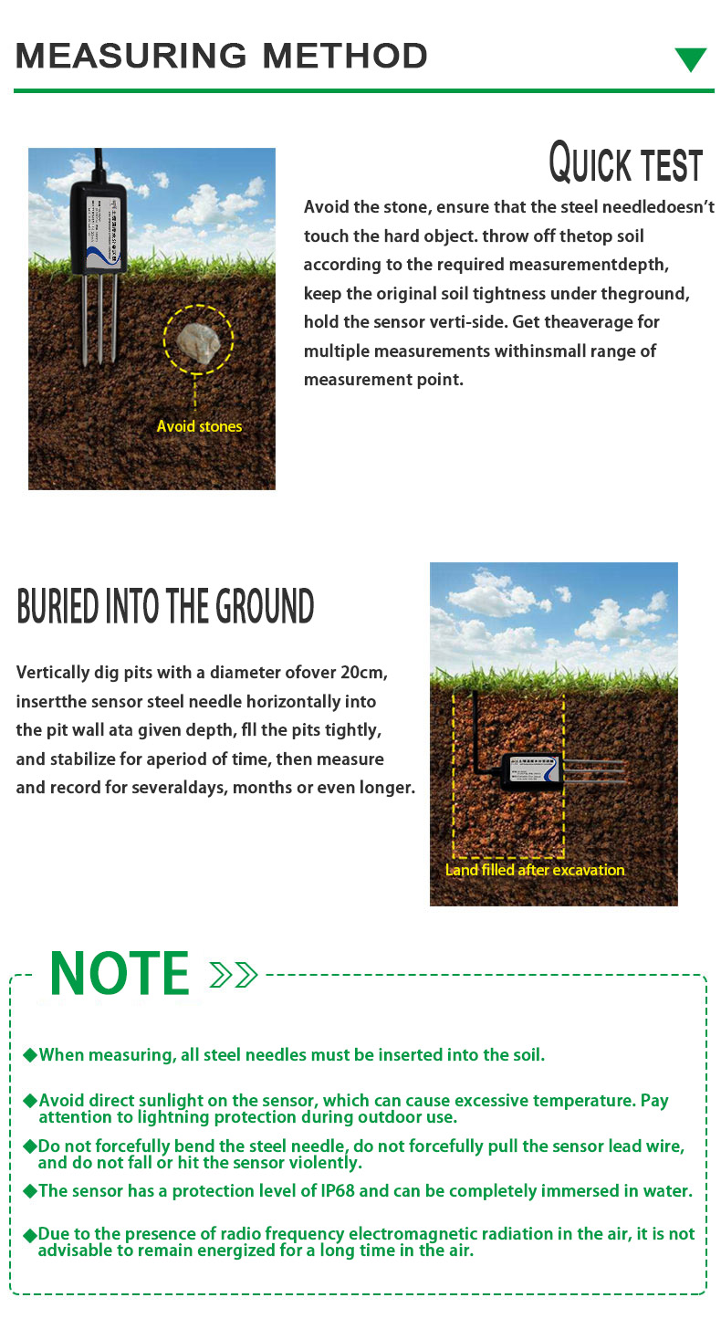 Selain pertanian, sensor ini juga digunakan secara meluas dalam penanaman hortikultur dan senario pemantauan alam sekitar. Dengan memantau keadaan tanah secara berterusan, menyediakan persekitaran pertumbuhan yang sesuai untuk tumbuhan hortikultur dan membantu meningkatkan kualiti tanaman; Dalam pemantauan alam sekitar, ia boleh digunakan untuk analisis keadaan tanah di kawasan perlindungan ekologi, mengekalkan keseimbangan ekologi, dan menggalakkan pembangunan mampan.